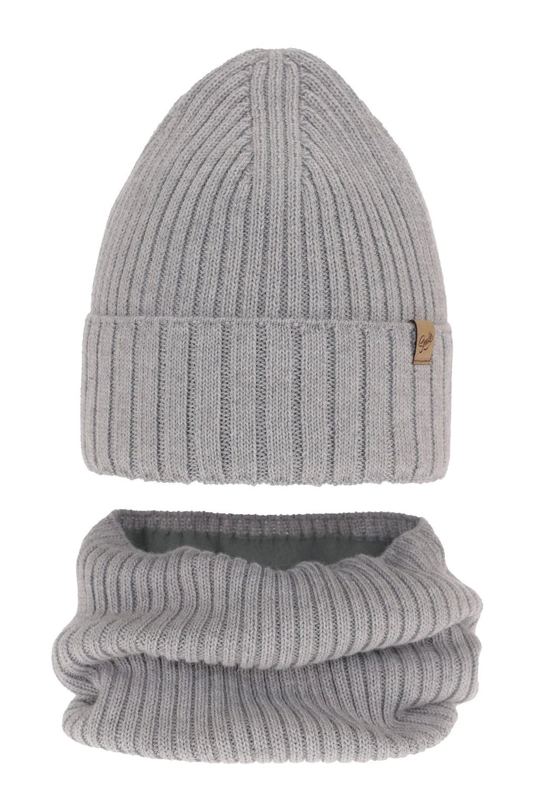 Winterset für Mädchen: Mütze und Schlauchschal aus Merinowolle in Grau Mesalia