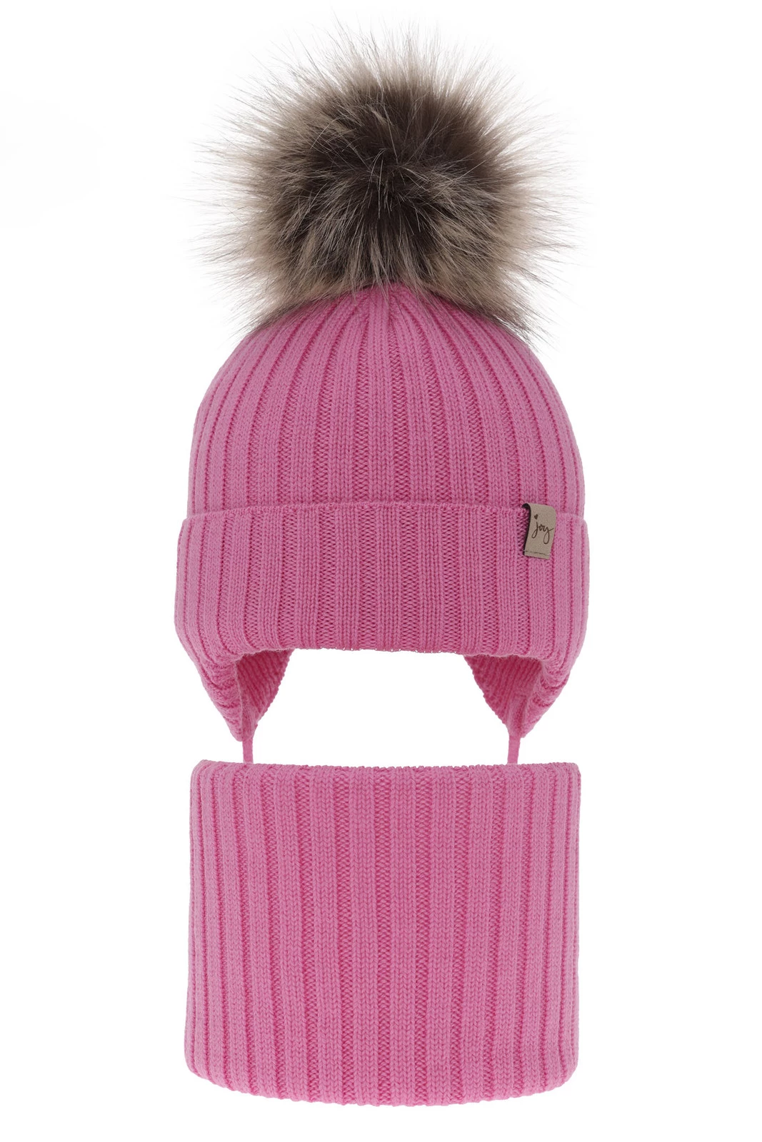 Winterset Mädchen: Mütze und Schlauchschal aus 100% extrafeiner Merinowolle in Rosa Junika