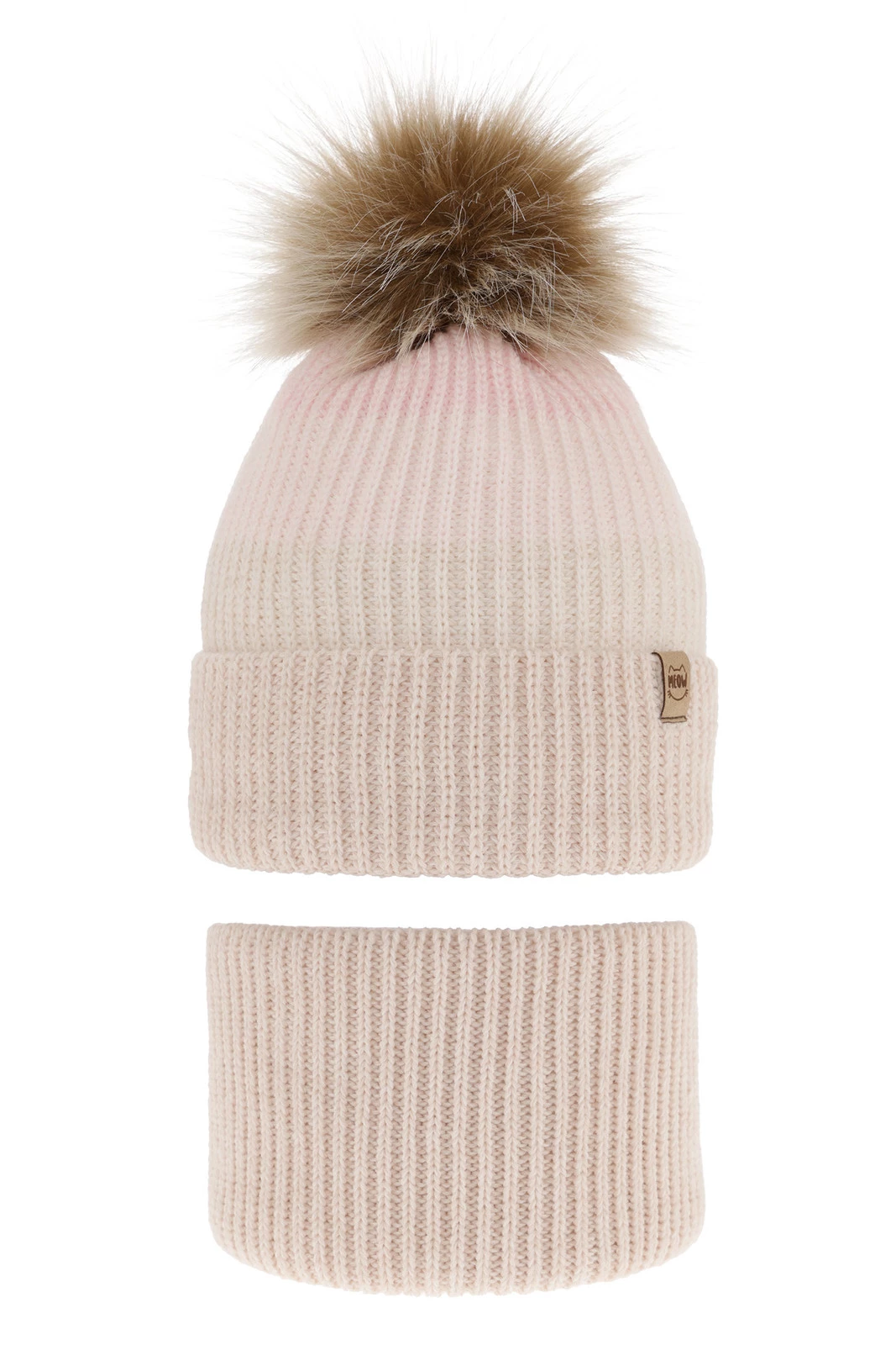 Winterset Mädchen: Mütze und Schlauchschal mit Bommel Rosa Gimena