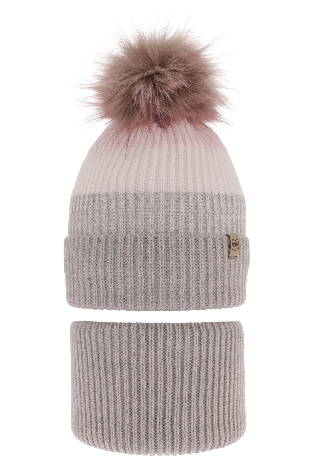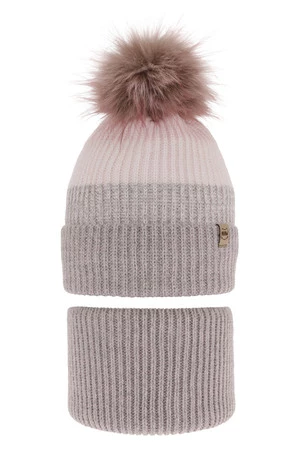 Winterset Mädchen: Mütze und Schlauchschal mit Bommel Grau Gimena