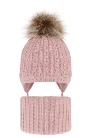 Winterset für Mädchen: Mütze und Schlauchschal mit Bommel in Rosa Passa