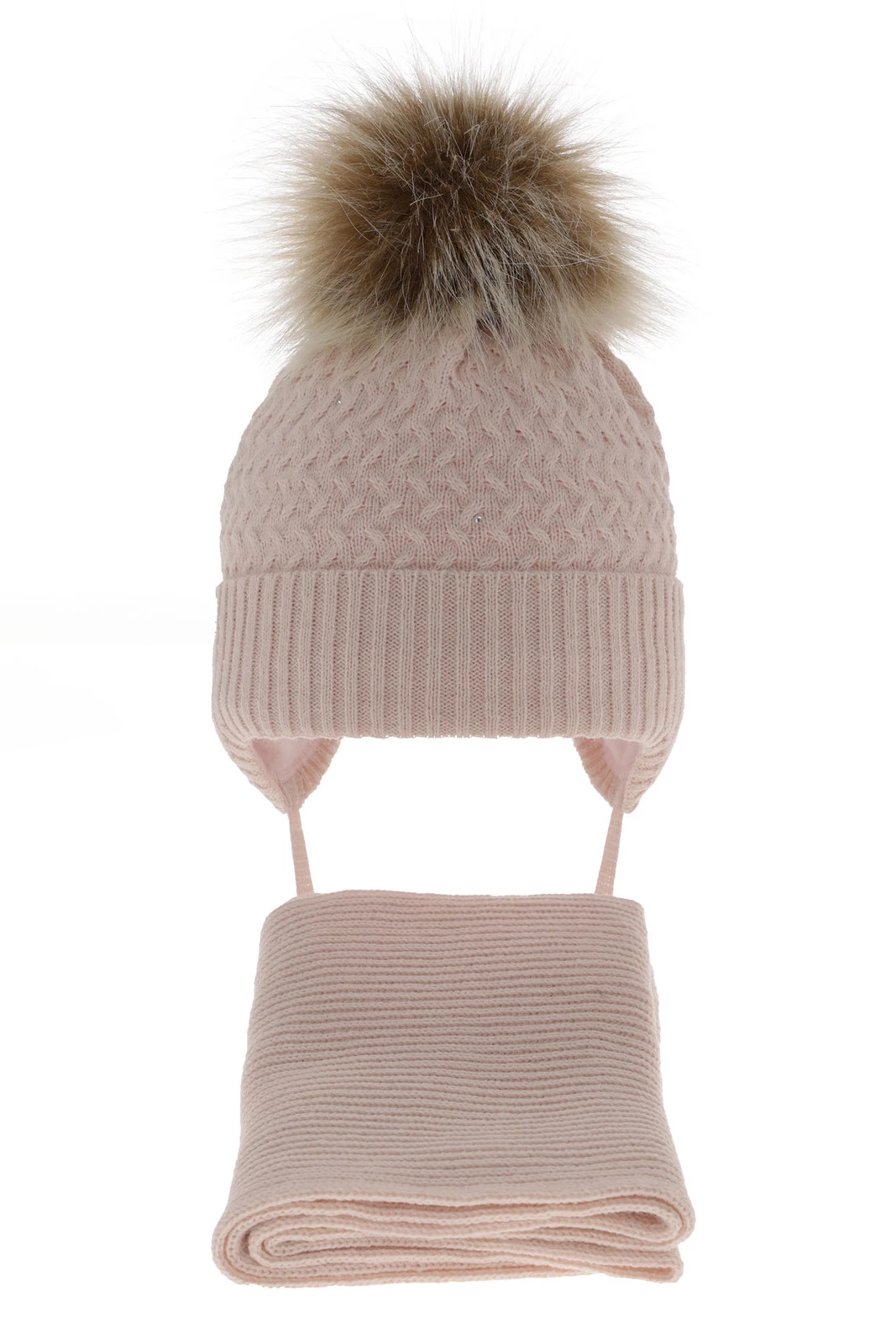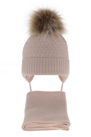 Winterset für Mädchen: Mütze und Schal mit Bommel in Rosa Zelta