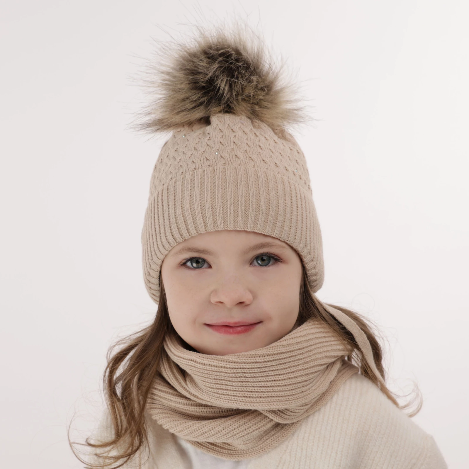 Wärme und Schutz im Set mit Bommelmütze und Schal