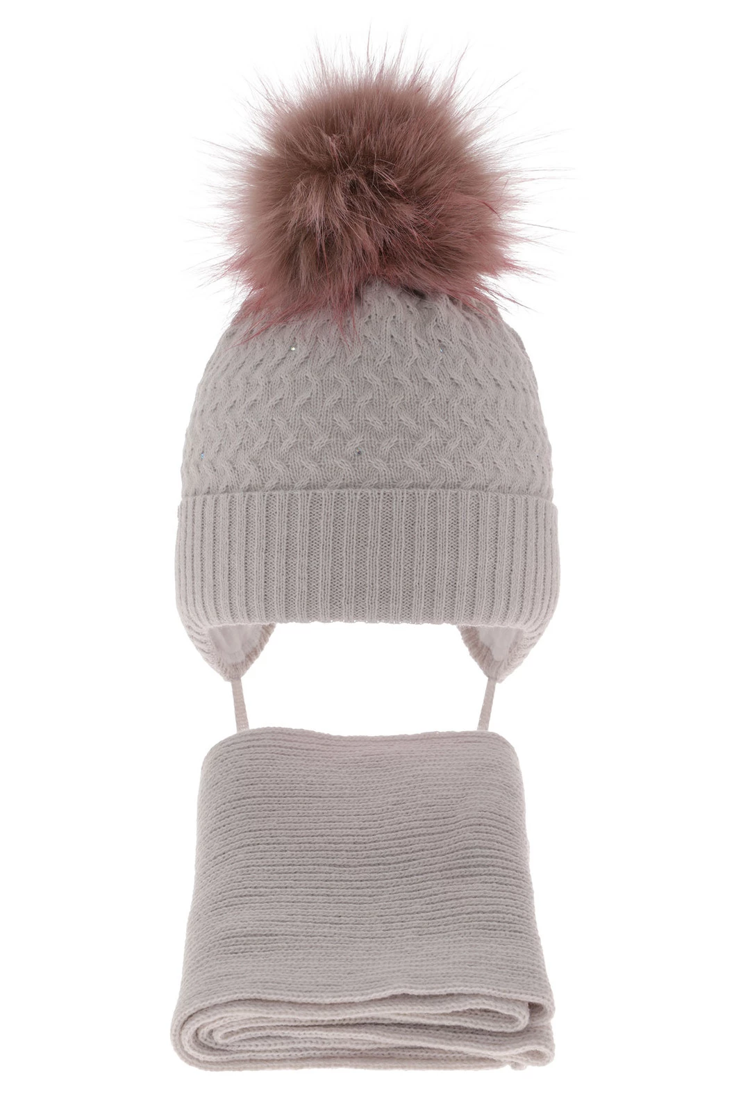 Winterset für Mädchen: Mütze und Schal mit Bommel in Grau Zelta