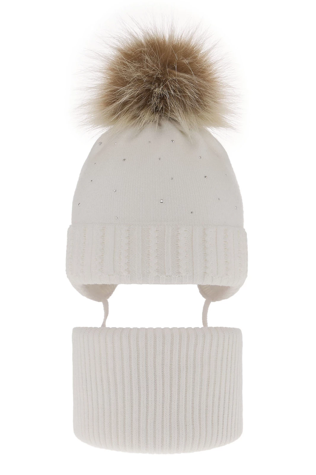 Winterset für Mädchen: Mütze und Schlauchschal mit Bommel in Weiß Renia