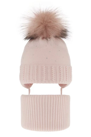 Winterset für Mädchen: Mütze und Schlauchschal mit Bommel in Rosa Renia