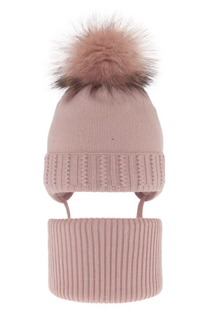 Winterset für Mädchen: Mütze und Schlauchschal mit Bommel in Rosa Renia