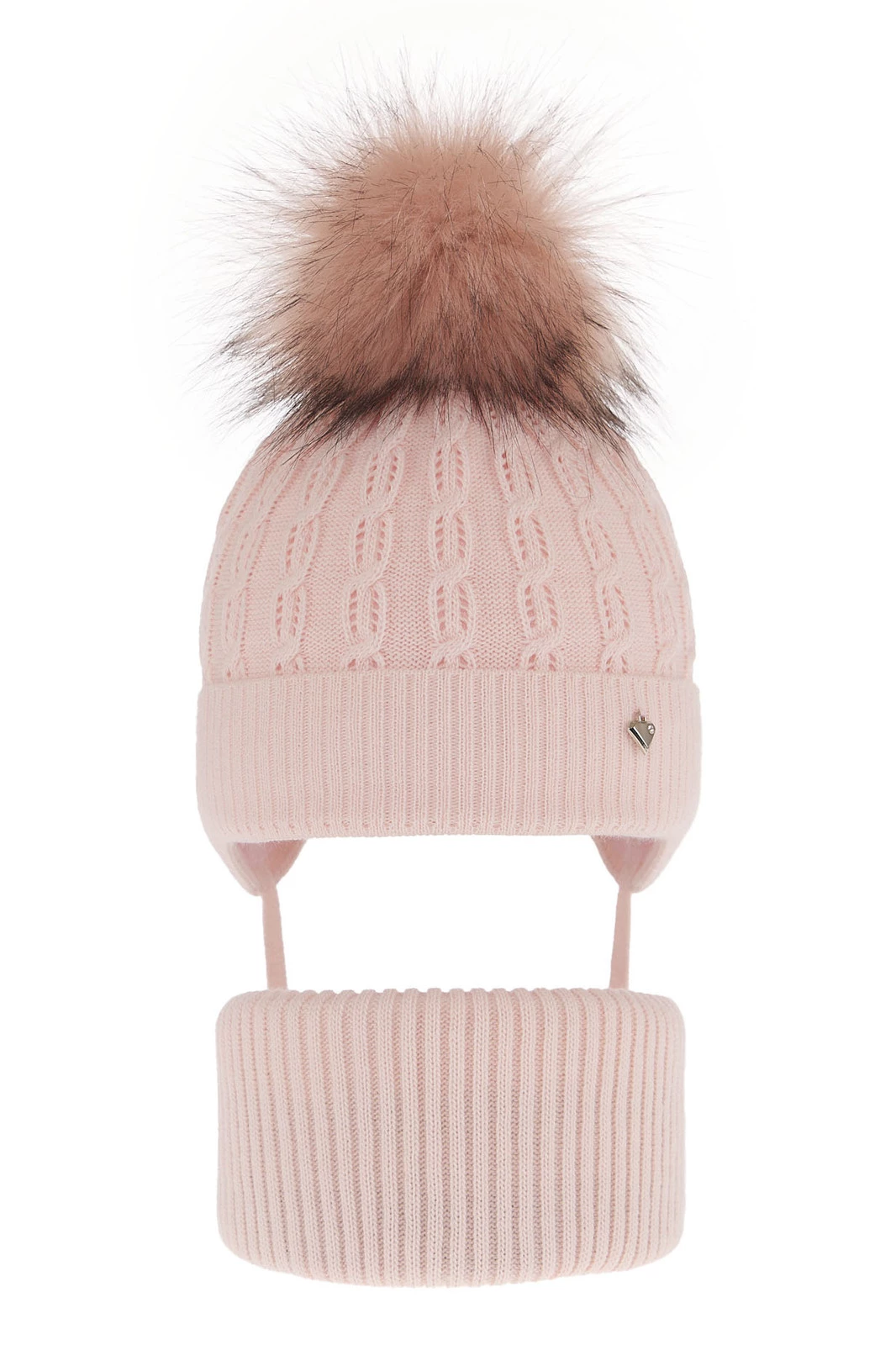 Winterset für Mädchen: Mütze und Schlauchschal mit Bommel in Rosa Tukana