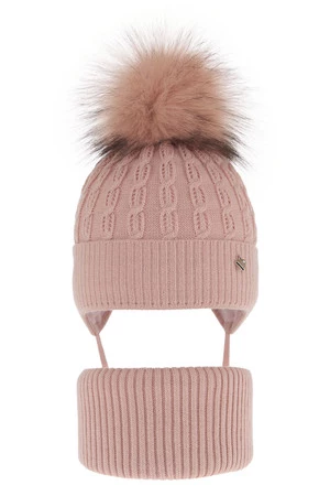 Winterset für Mädchen: Mütze und Schlauchschal mit Bommel in Rosa Tukana