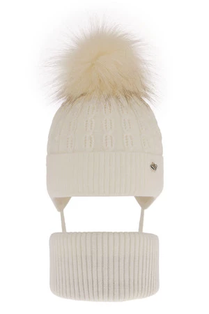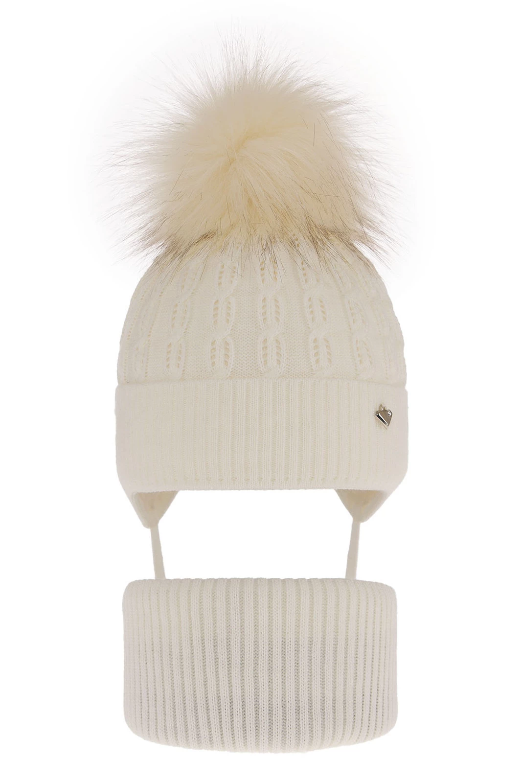 Winterset für Mädchen: Mütze und Schlauchschal mit Bommel in Cremefarben Tukana