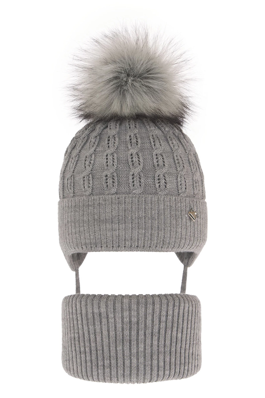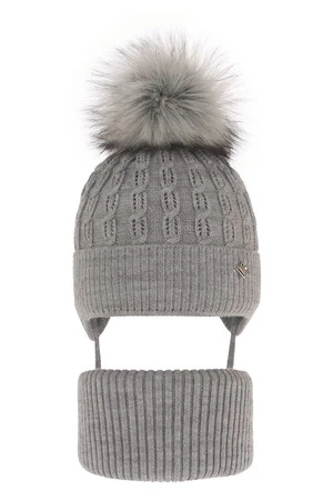 Winterset für Mädchen: Mütze und Schlauchschal mit Bommel in Grau Tukana