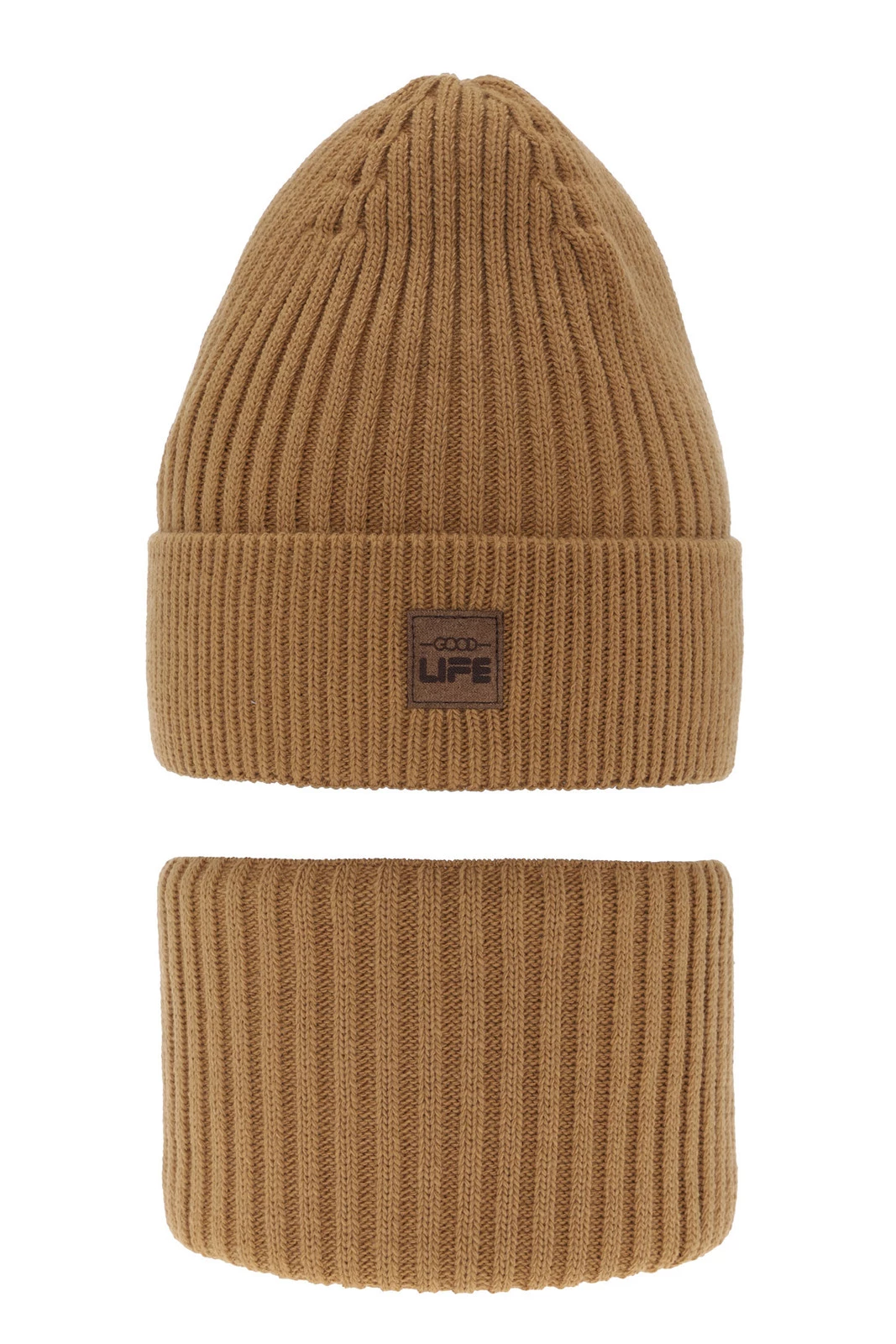Winterset für Jungen: Mütze und Schlauchschal in Camel Basilio