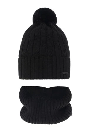 Winterset für Jungen: Mütze und Schlauchschal mit Bommel aus Merinowolle  in Schwarz Talar
