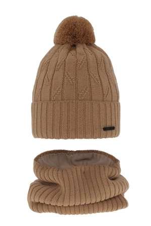 Winterset für Jungen: Mütze und Schlauchschal mit Bommel aus Merinowolle in Camel Talar
