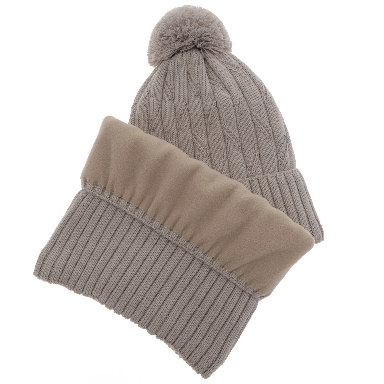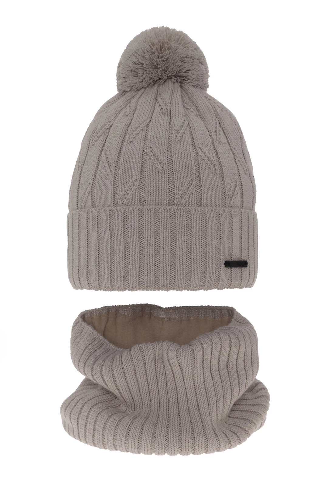 Winterset für Jungen: Mütze und Schlauchschal mit Bommel in Beige aus Merinowolle Talar