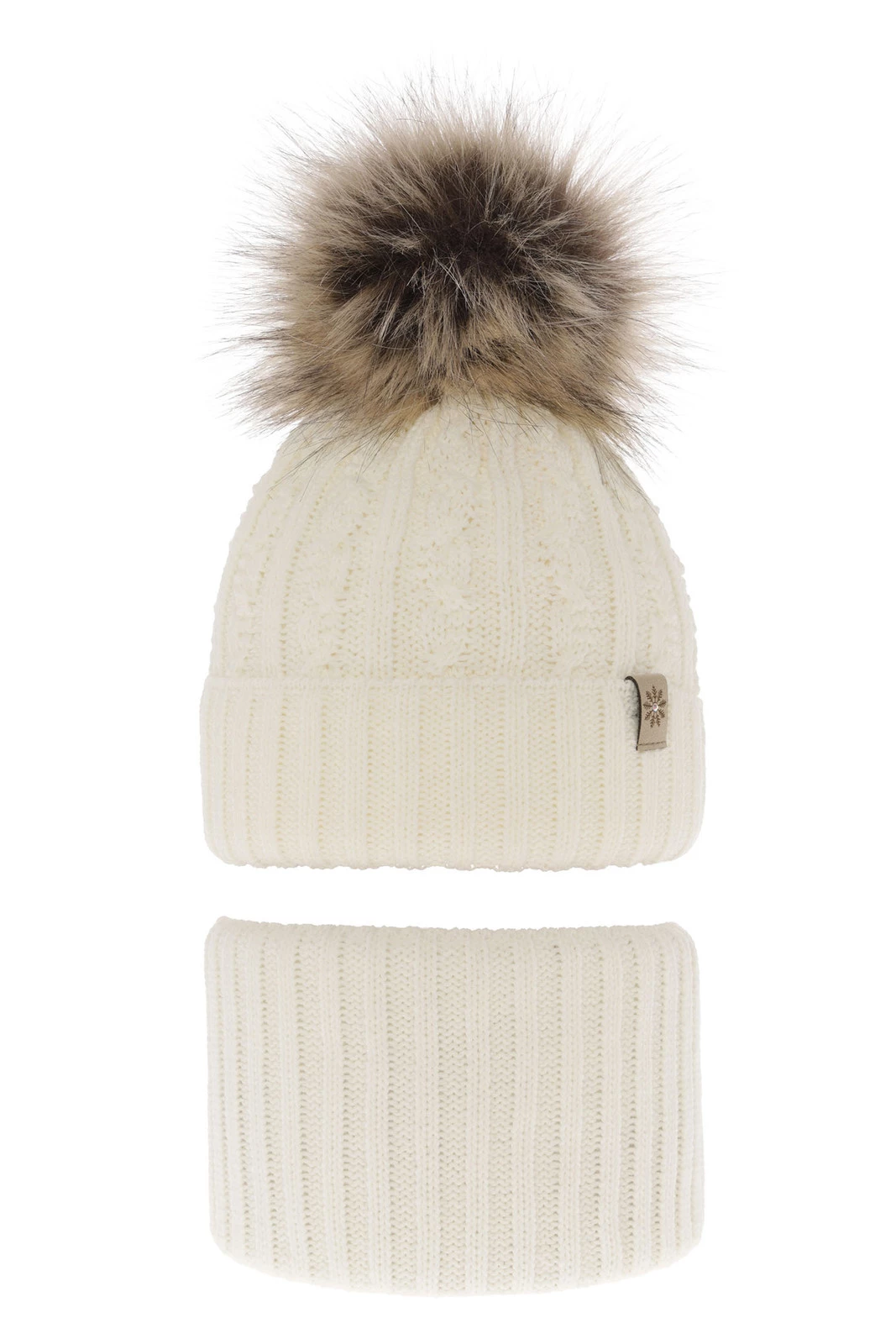 Winterset Mädchen: Mütze und Schlauchschal mit Bommel Cremefarben Pretoria