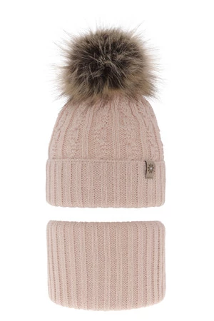 Winterset Mädchen: Mütze und Schlauchschal mit Bommel Beige Pretoria