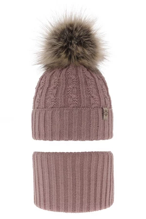 Winterset Mädchen: Mütze und Schlauchschal mit Bommel Rosa Pretoria
