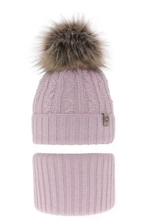 Winterset Mädchen: Mütze und Schlauchschal mit Bommel Violett Pretoria