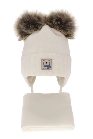 Winterset für Jungen: Mütze und Schal mit zwei Bommeln in Cremefarben Jewel