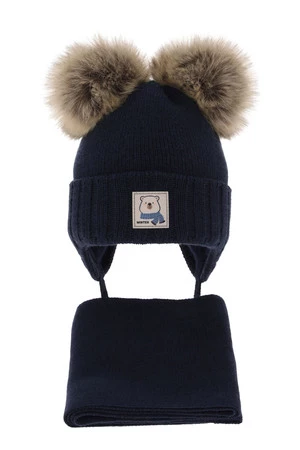 Winterset für Jungen: Mütze und Schal mit zwei Bommeln in Navy Blau Jewel
