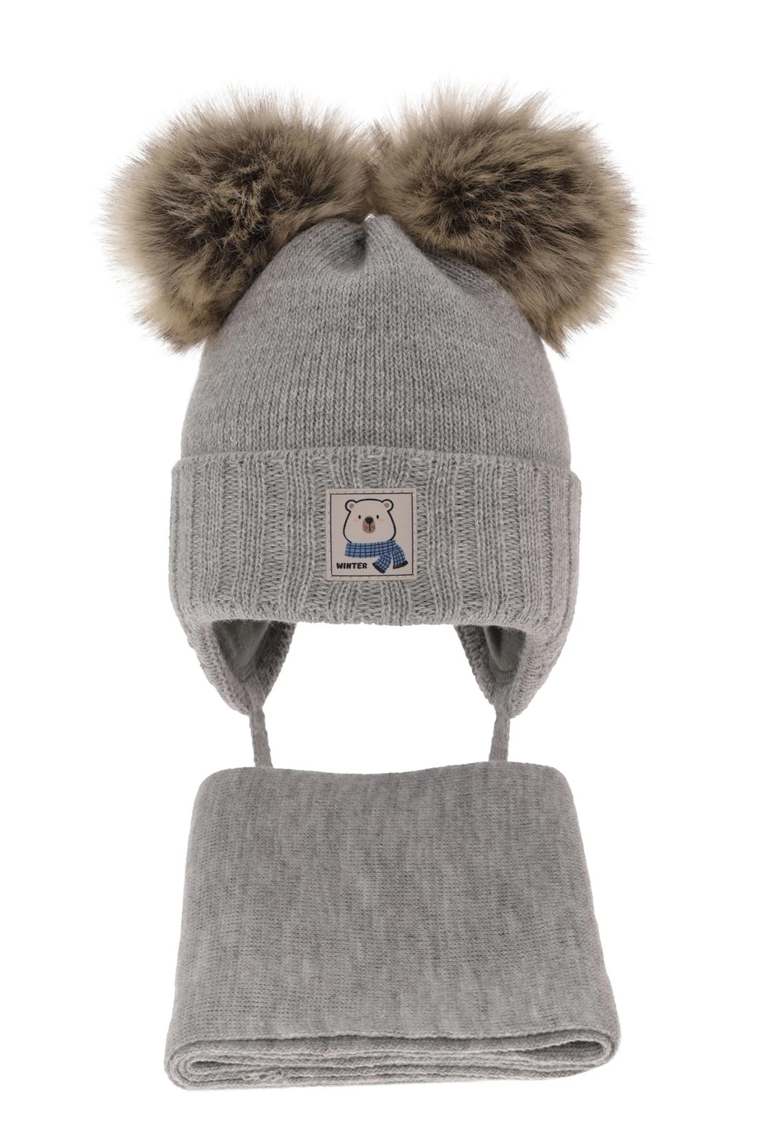 Winterset für Jungen: Mütze und Schal mit zwei Bommeln in Grau Jewel