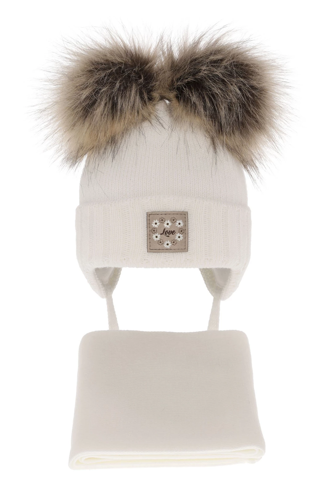 Winterset Mädchen: Mütze und Schal mit zwei Bommeln Weiß Jazz
