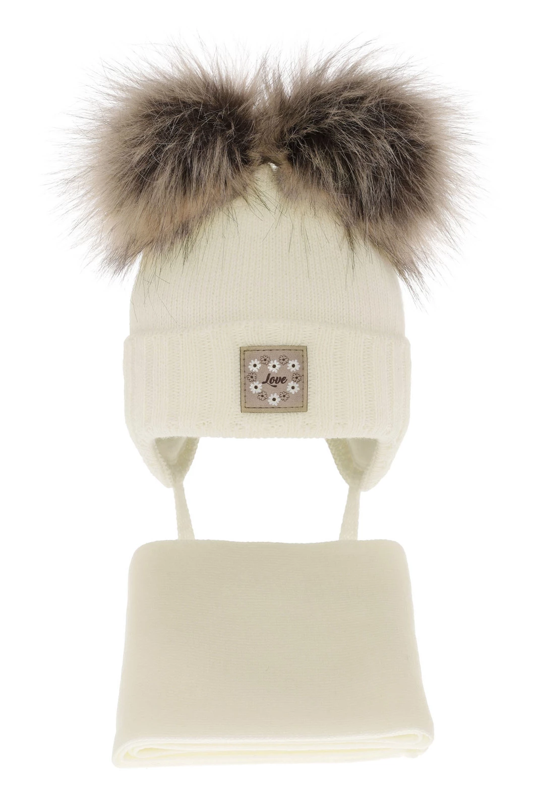 Winterset Mädchen: Mütze und Schal mit zwei Bommeln Cremefarben Jazz