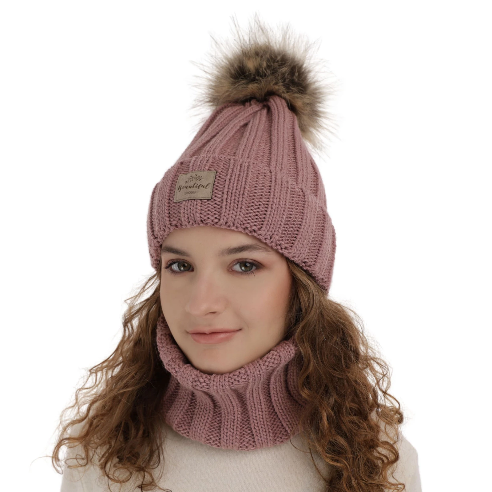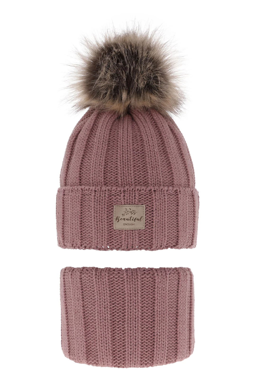 Winterset Mädchen: Mütze und Schlauchschal mit Bommel Rosa Kaliope