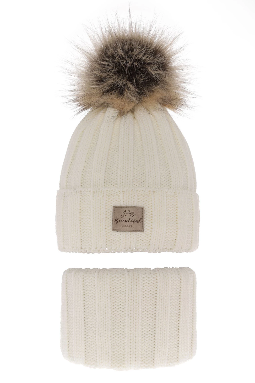Winterset Mädchen: Mütze und Schlauchschal mit Bommel Cremefarben Kaliope