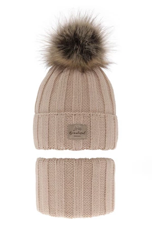Winterset Mädchen: Mütze und Schlauchschal mit Bommel Beige Kaliope