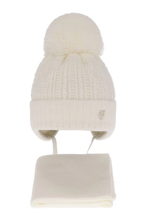 Winterset Mädchen: Mütze und Schal mit Bommel Cremefarben Marisa