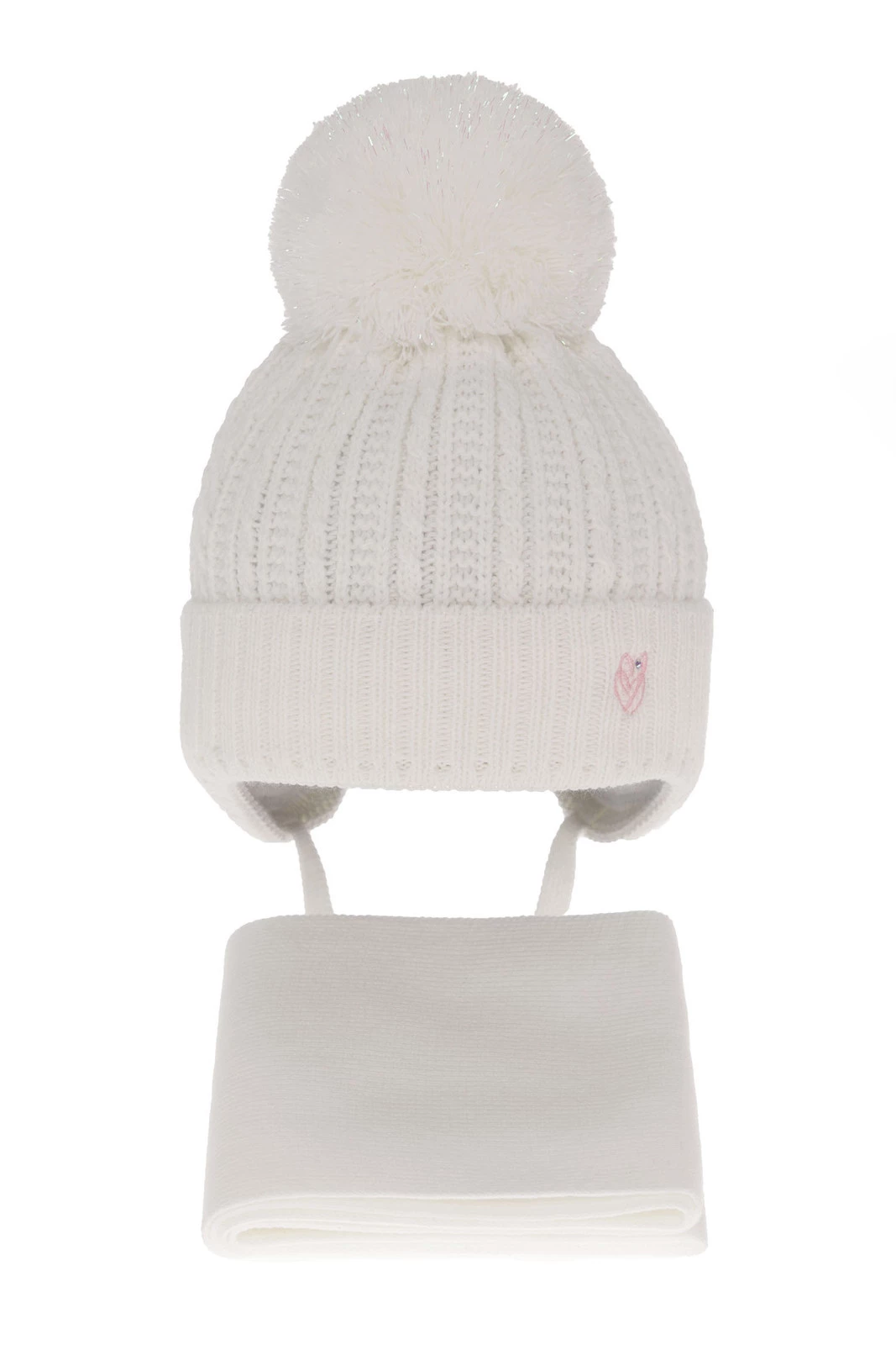 Winterset Mädchen: Mütze und Schal mit Bommel Weiß Marisa