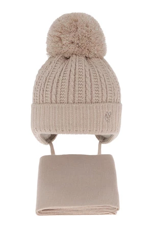 Winterset Mädchen: Mütze und Schal mit Bommel Beige Marisa