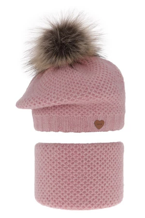 Winterset Mädchen: Mütze und Schlauchschal mit Bommel Rosa Francesca