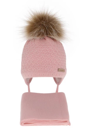 Winterset für Mädchen: Mütze und Schal mit Bommel in Rosa Clotilde