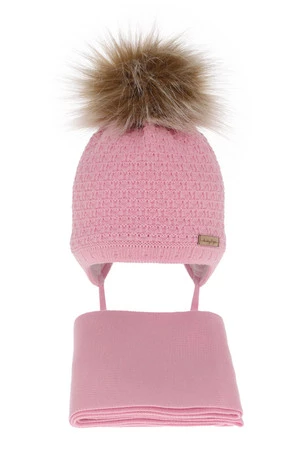 Winterset für Mädchen: Mütze und Schal mit Bommel in Rosa Clotilde
