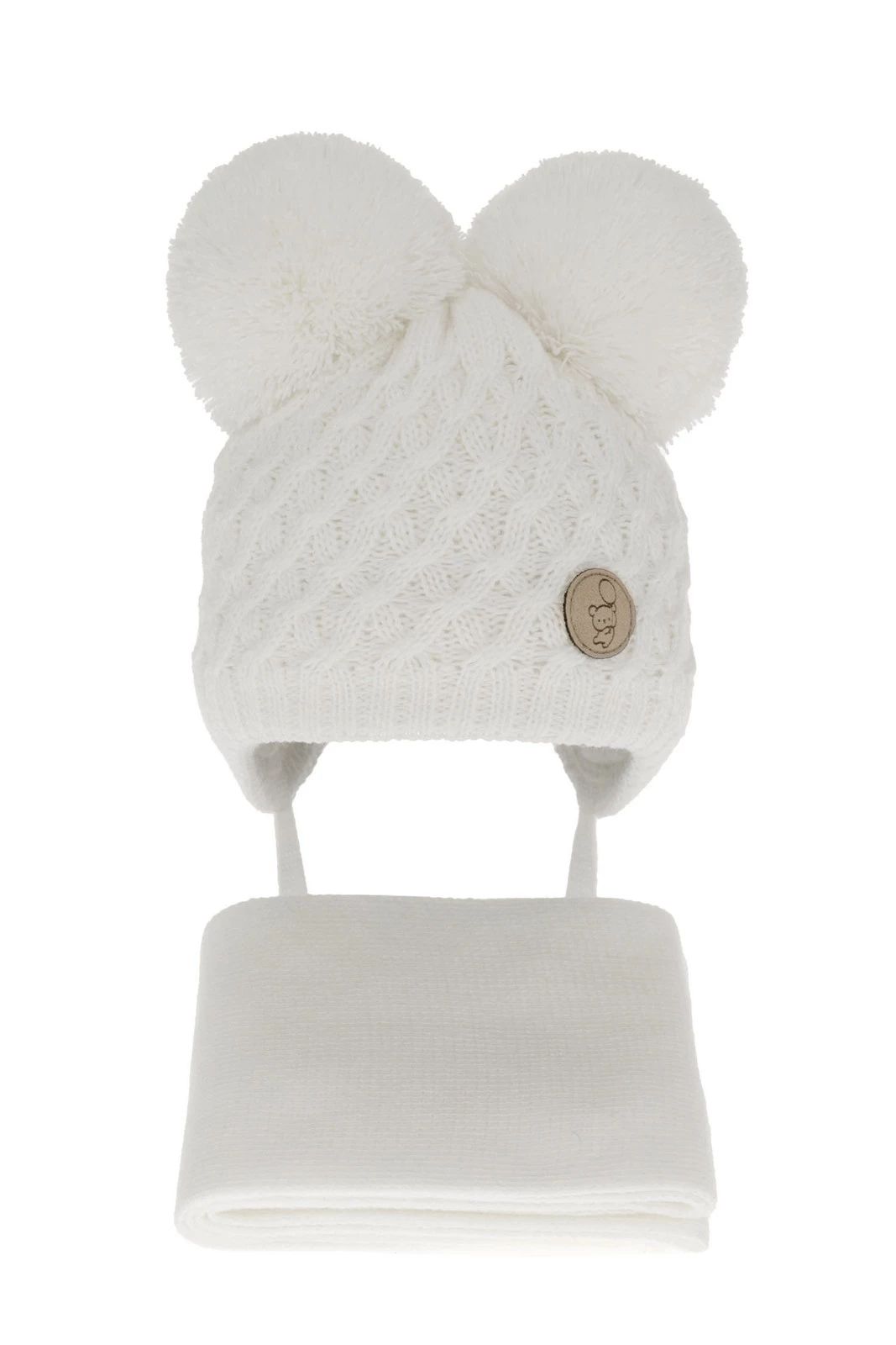 Winterset Jungen: Mütze und Schal mit zwei Bommeln Weiß Alonso