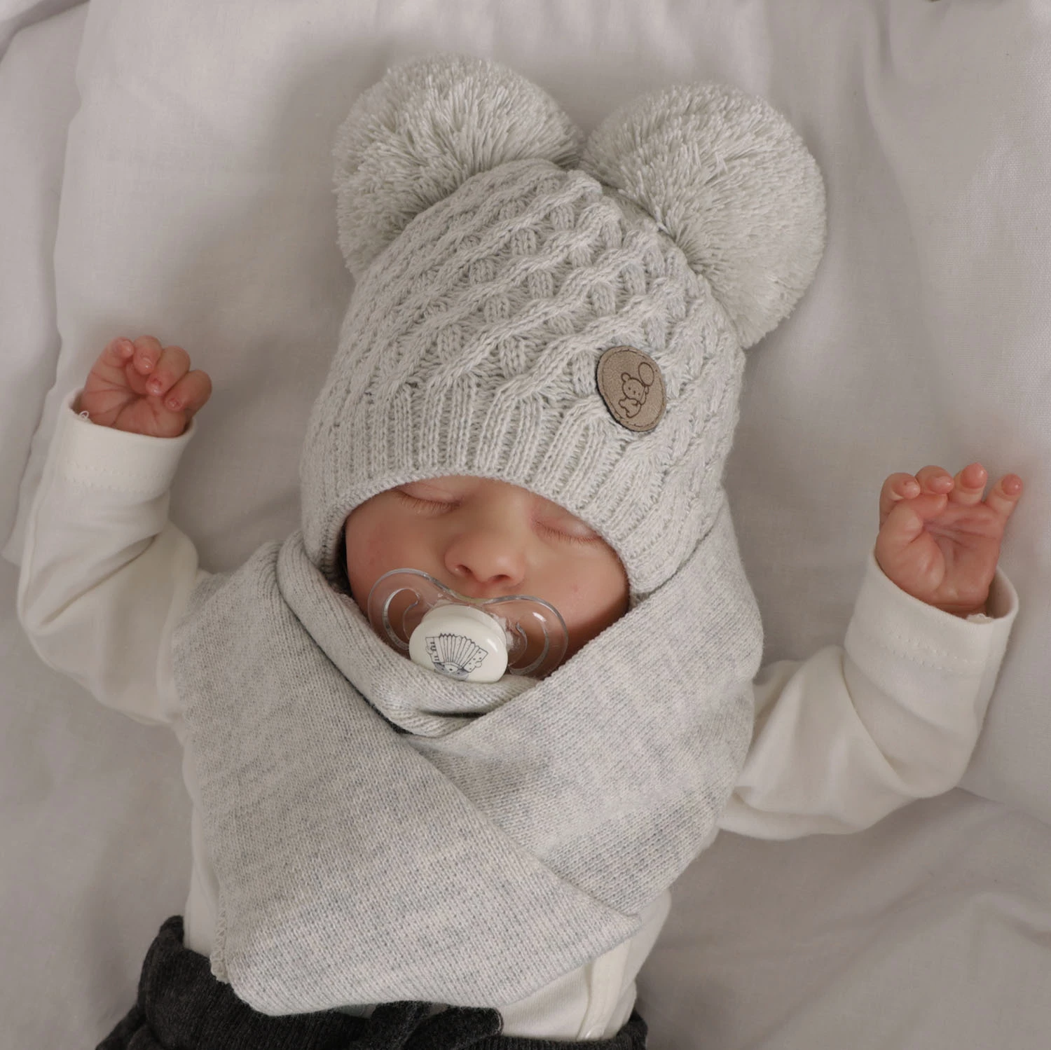 Der zum Set gehörende Schal wurde so entworfen, dass er den Hals des Kindes perfekt umhüllt und vor Kälte und Zugluft schützt. Er ist breit genug, um ausreichenden Schutz zu bieten, schränkt aber gleichzeitig die Bewegungen des Kleinen beim Spielen nicht ein.