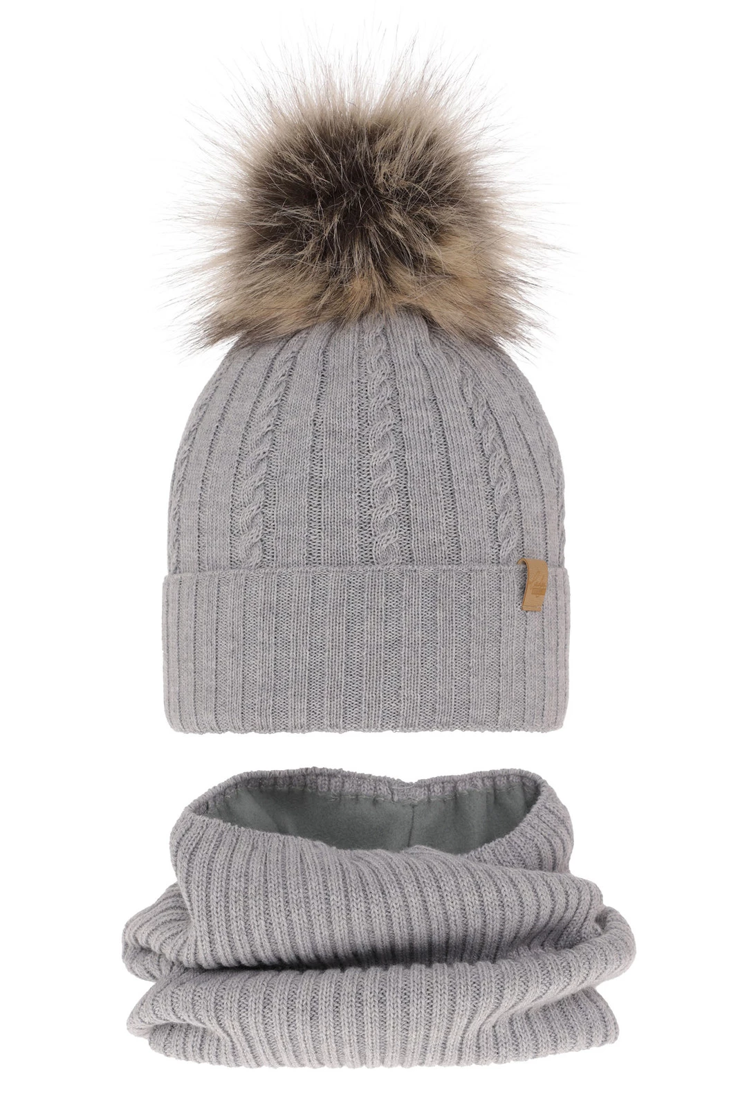 Winterset für Mädchen: Mütze und Schlauchschal aus Merinowolle in Grau Mirabel