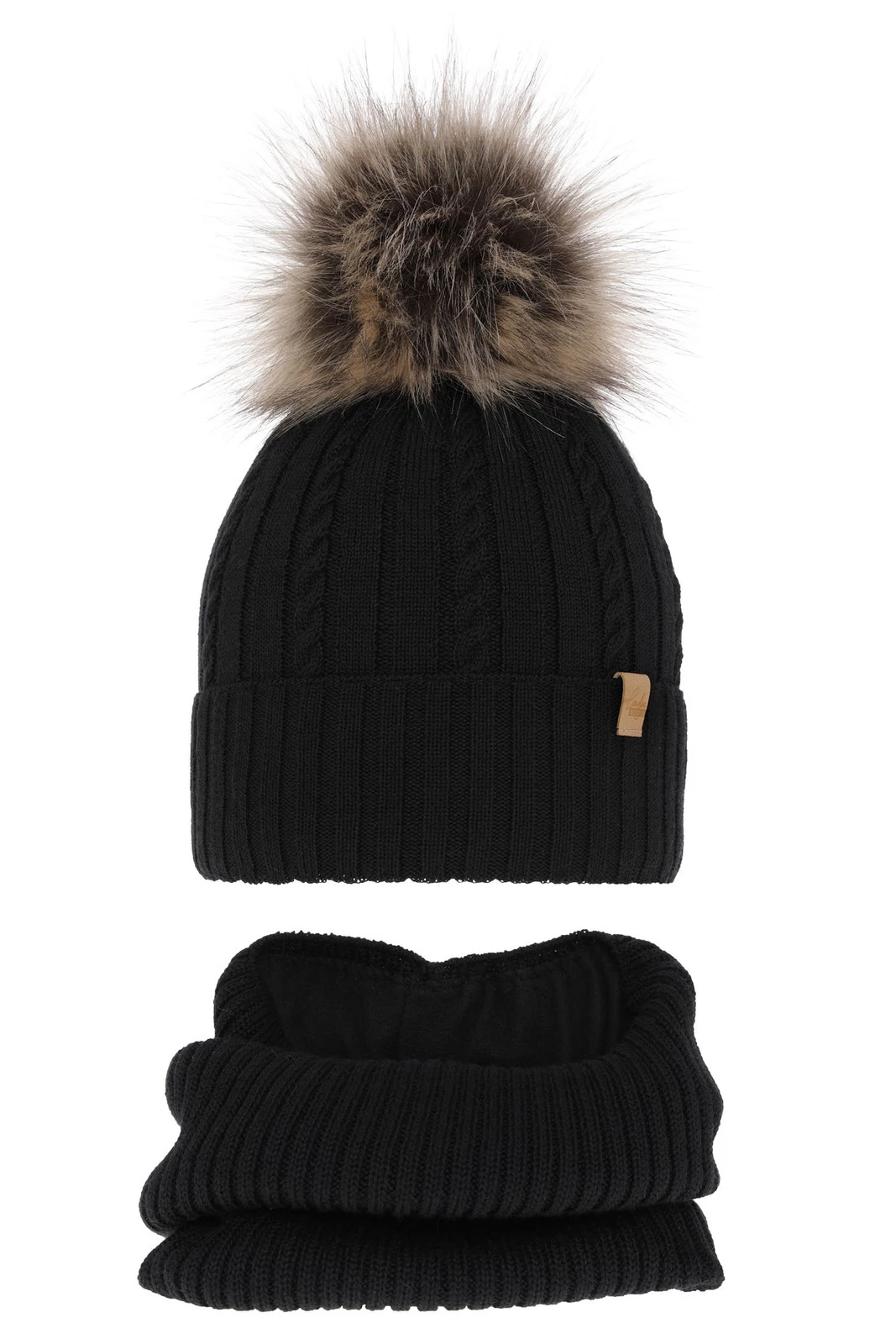 Winterset für Mädchen: Mütze und Schlauchschal aus Merinowolle in Schwarz Mirabel