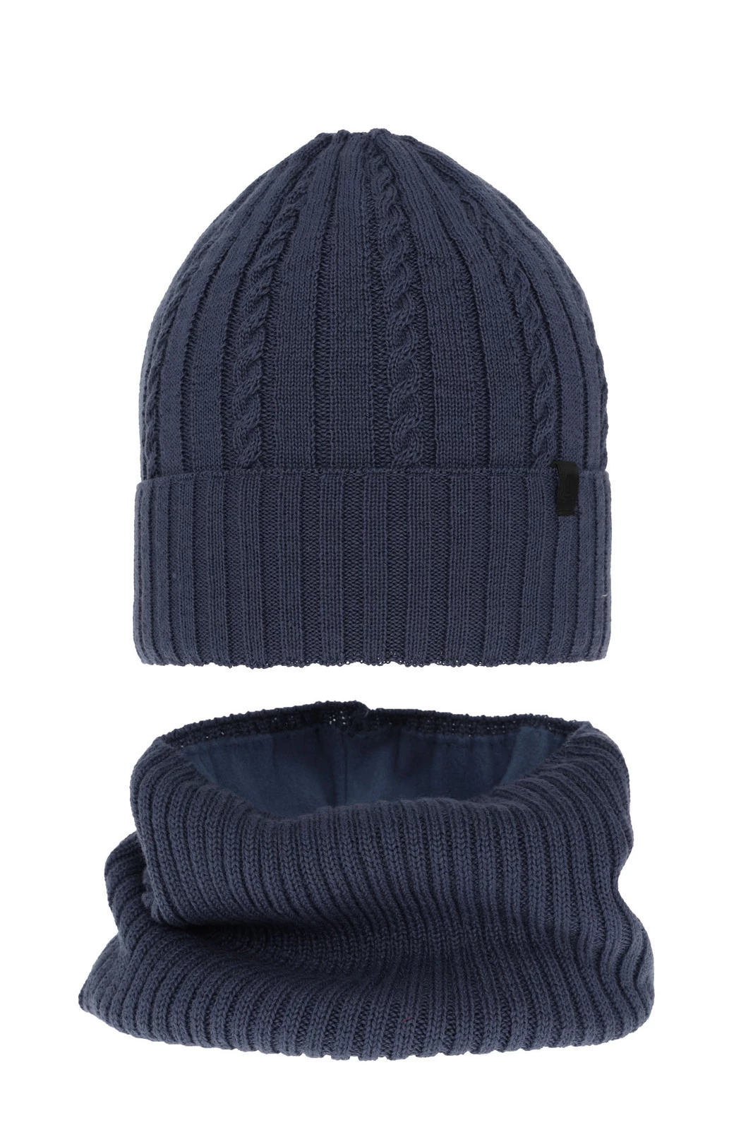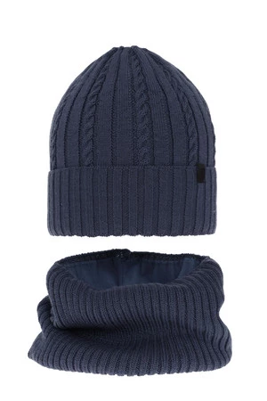 Winterset für Jungen: Mütze und Schlauchschal aus Merinowolle in Blau Kairo