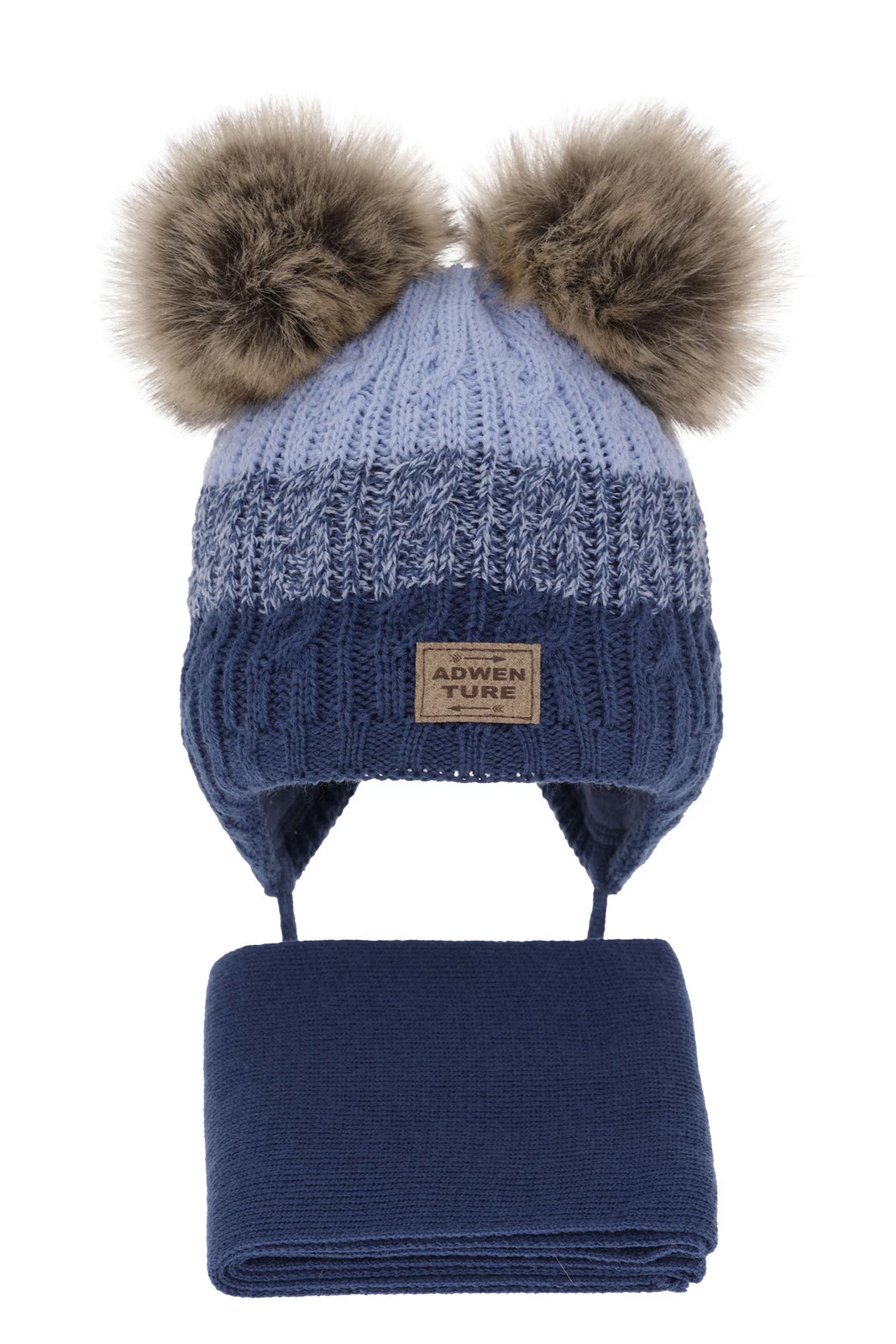 Winterset Jungen: Mütze und Schal mit zwei Bommeln Blau Platon