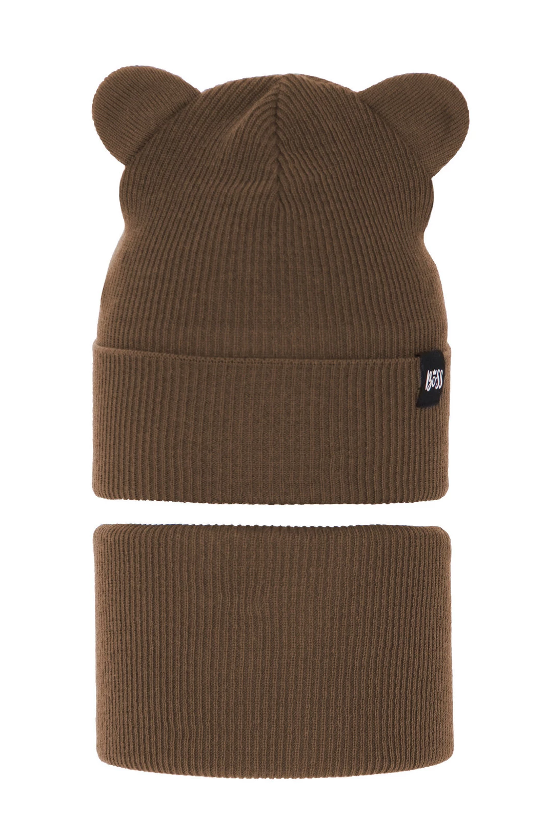 Herbst und Frühlingsset Jungen: Mütze und Schlauchschal, mit Baumwolle, Camel Grajan