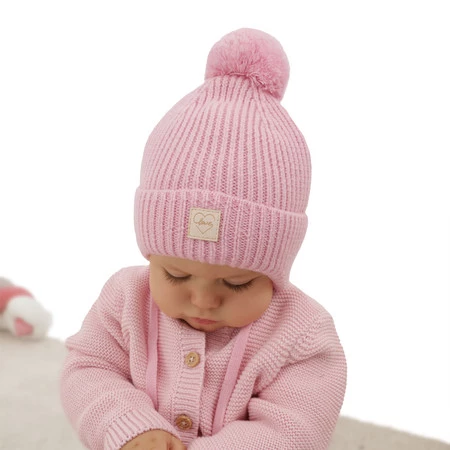 Wintermütze für Mädchen aus 100% extrafeiner Merinowolle, gefüttert mit Wollfleece in Rosa Havana