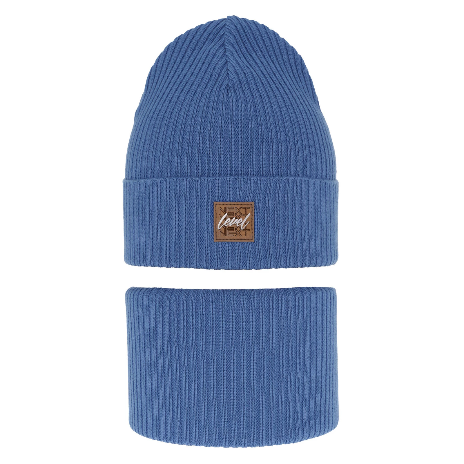 Herbst und Frühlingsset Jungen: Mütze und Schlauchschal, mit Baumwolle, Blau Fenix
