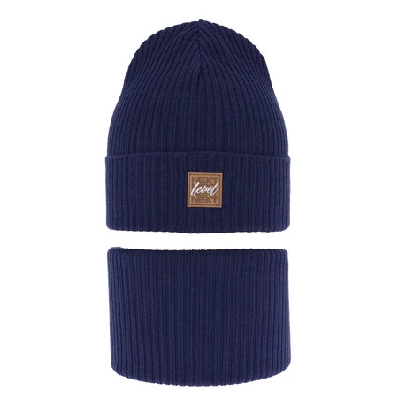 Herbst und Frühlingsset Jungen: Mütze und Schlauchschal, mit Baumwolle, Navy Blau Fenix