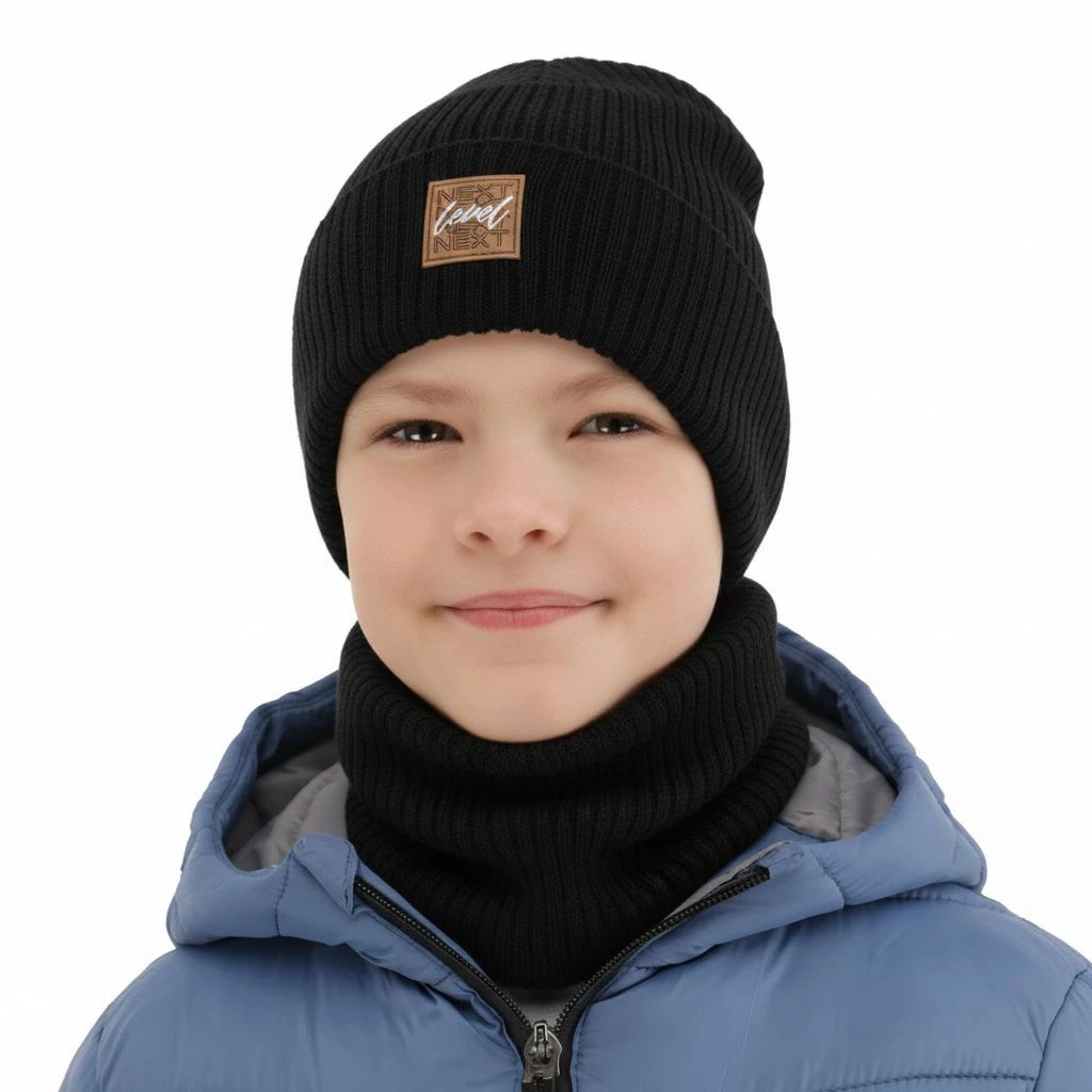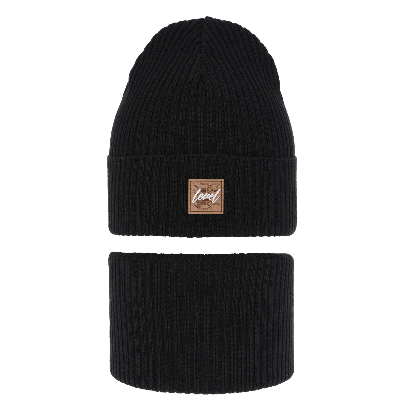 Herbst und Frühlingsset Jungen: Mütze und Schlauchschal, mit Baumwolle, Schwarz Fenix