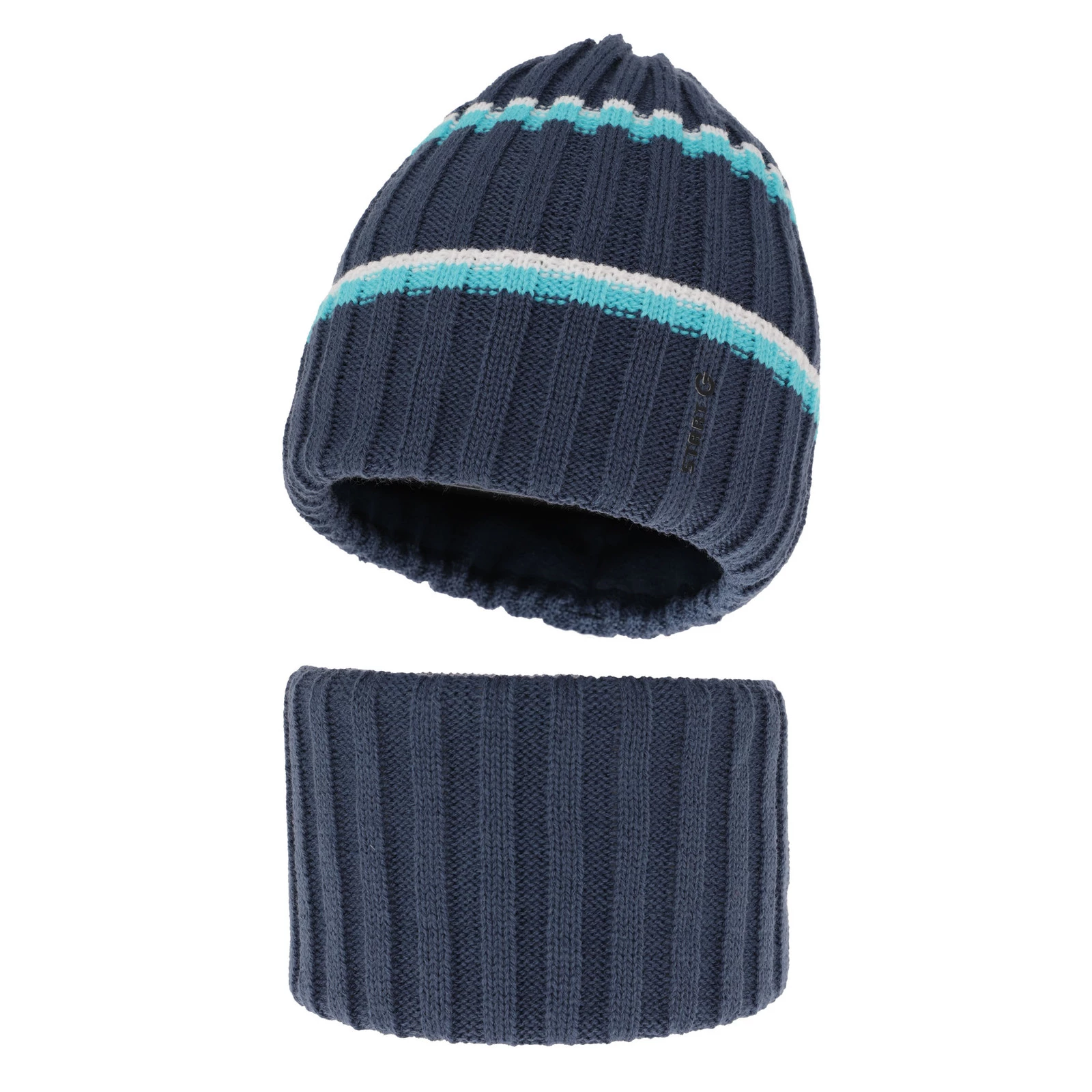 Winterset für Jungen: Mütze und Schlauchschal in Blau Bastien