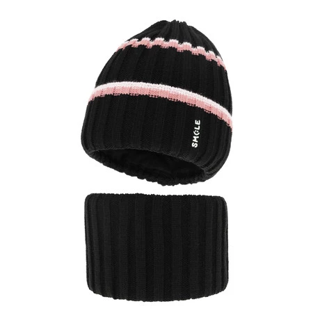 Winterset für Mädchen: Mütze und Schlauchschal in Schwarz Judit